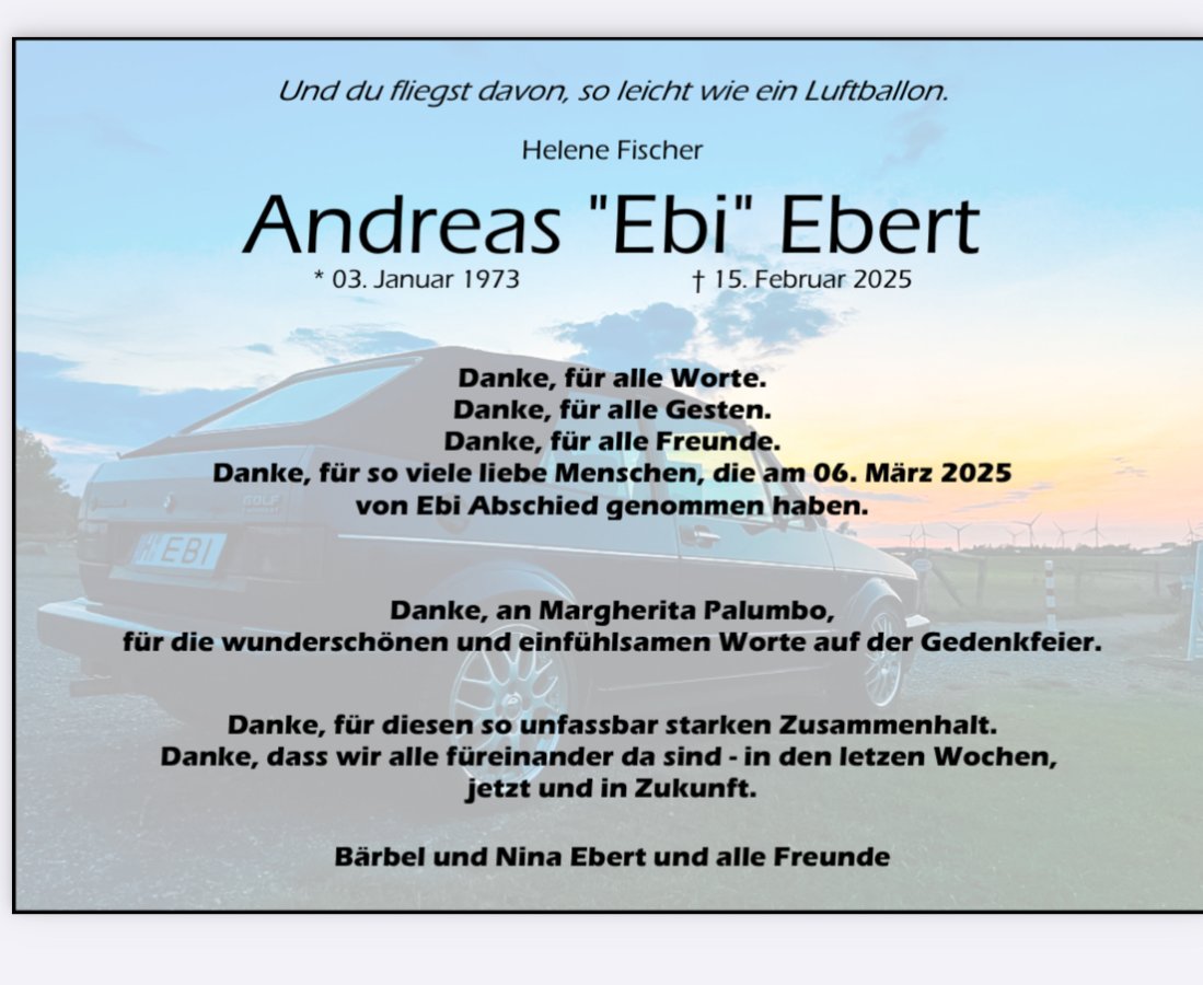 Wir haben vom plötzlichen Tod von Andreas erfahren und möchten nun auf diesem Weg unser tiefstes Mitgefühl ausdrücken.